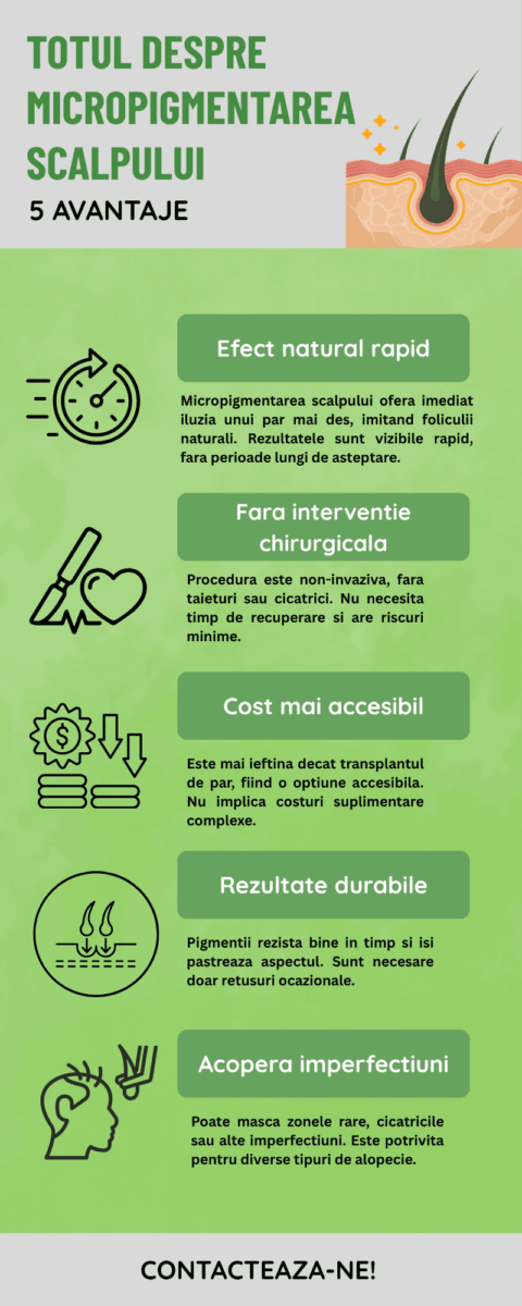 | Disponibilitate a serviciului de micropigmentare a scalpului in Romania (DA/NU) | Da, acest tip de serviciu este disponibil in Romania. |